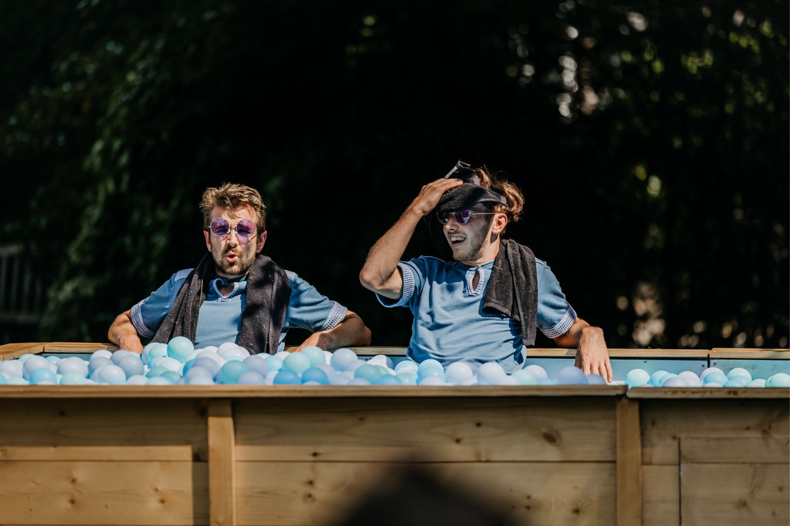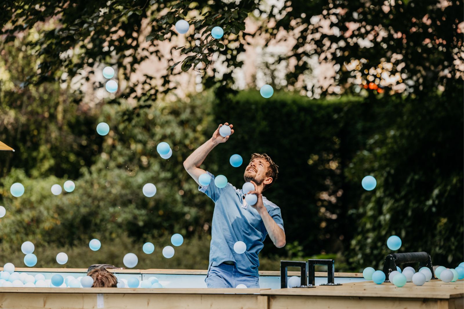 Splash is komisch absurd circus vol objectmanipulatie, fysiek theater en visuele illusies, overgoten met een flinke dosis humor en gekkigheid. Ga mee op ontsnappingsreis richting een absurde droomwereld ver weg van de dagelijkse realiteit, waar het zwembad gevuld met 25.000 ballen centraal staat en watersport en ‘bommetjes’ de start zijn voor een jongleerfestijn.